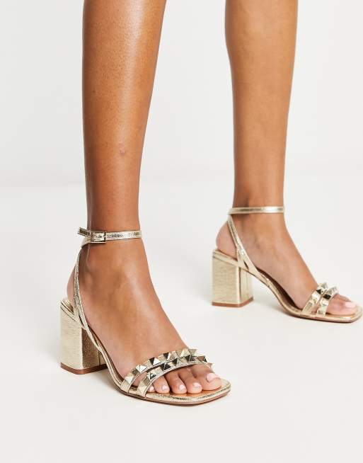 ASOS DESIGN - Heath - Sandales cloutées à talon mi-haut - Doré