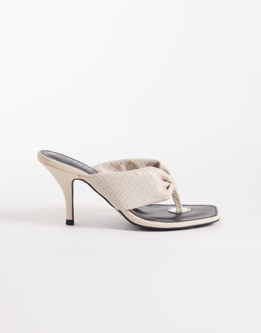ASOS DESIGN - Hot-stuff - Sandales à talon effet tressé avec entredoigt - Blanc cassé