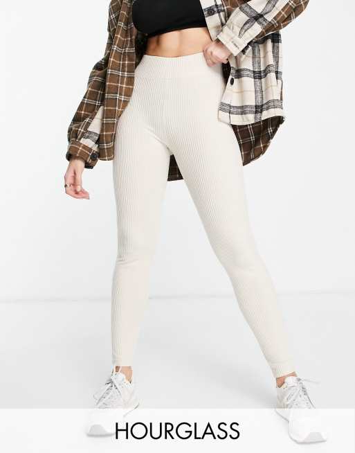 ASOS DESIGN Hourglas - Legging taille haute en tissu côtelé brossé - Blanc os