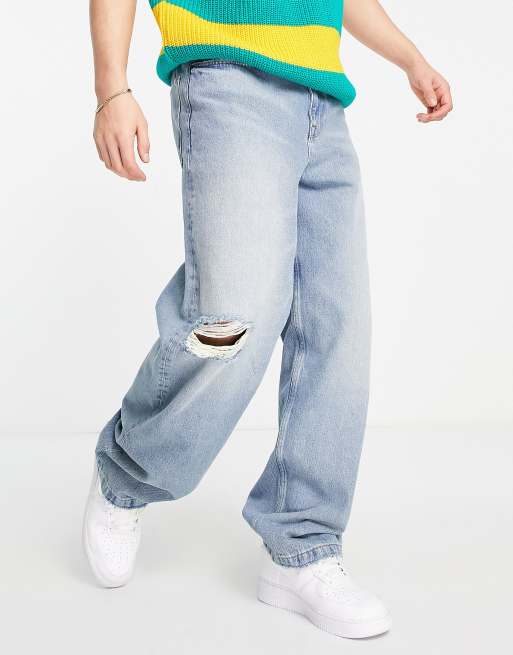 ASOS DESIGN - Jean ample avec déchirures - Bleu clair délavé