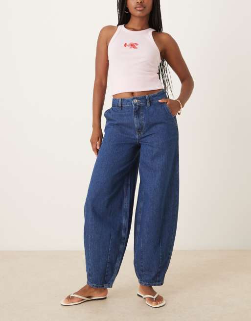 ASOS DESIGN - Jean ample avec ourlets à pinces - Bleu moyen