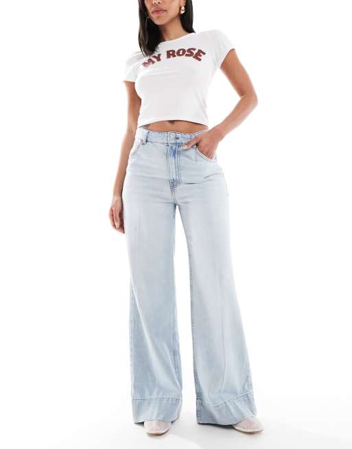 ASOS DESIGN - Jean ample avec pli devant - Pâle délavé
