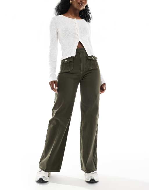 ASOS DESIGN - Jean ample avec poches à l'avant - Kaki
