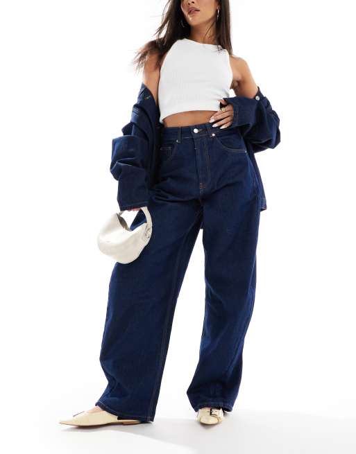 ASOS DESIGN - Jean coupe ample à taille haute et à rayures - Bleu brut