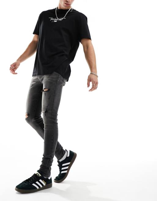 ASOS DESIGN - Jean déchiré effet seconde peau en tissu power stretch - Noir délavé