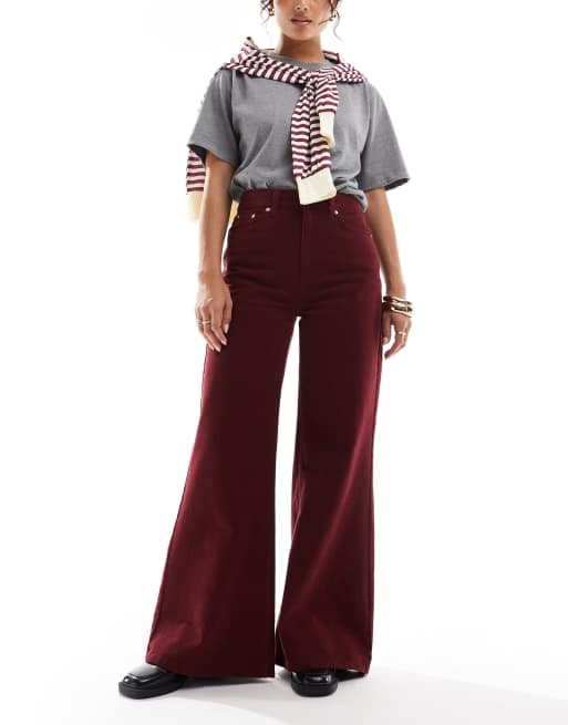 ASOS DESIGN - Jean doux coupe ample - Bordeaux