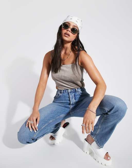 ASOS DESIGN - Jean droit stretch confortable à taille mi-haute - Délavage moyen