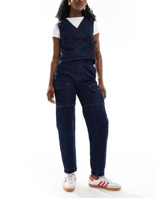 ASOS DESIGN - Jean fuselé style utilitaire - Bleu délavé