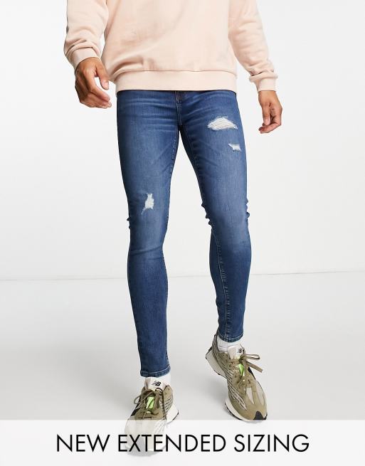 ASOS DESIGN - Jean seconde peau en tissu power stretch avec abrasions - Bleu foncé délavé