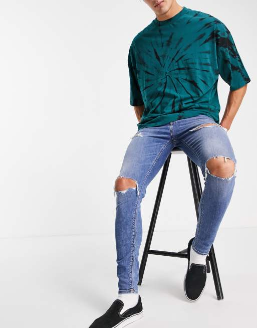 ASOS DESIGN - Jean seconde peau en tissu power stretch avec déchirures à délavage moyen