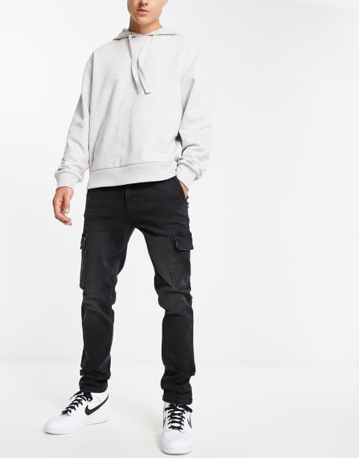 ASOS DESIGN - Jean skinny coupe cargo - Noir délavé