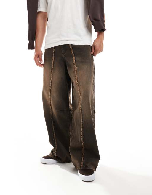 ASOS DESIGN - Jean ultra baggy avec bords effilochés - Gris