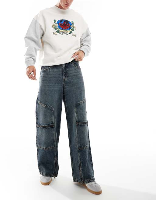 ASOS DESIGN - Jean ultra baggy avec empiècements et détails zippés - Délavage moyen