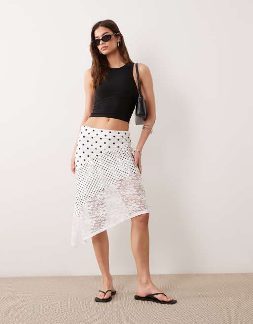 ASOS DESIGN - Jupe à pois avec ourlet mouchoir