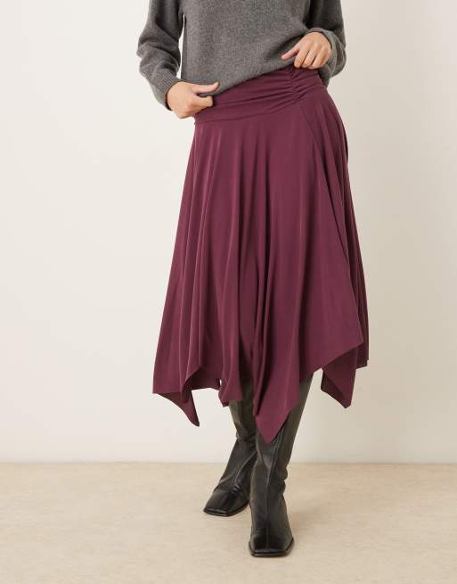 ASOS DESIGN - Jupe asymétrique en modal avec ourlet mouchoir - Bordeaux