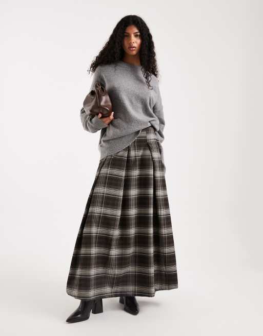 ASOS DESIGN - Jupe cercle longue et plissée à carreaux