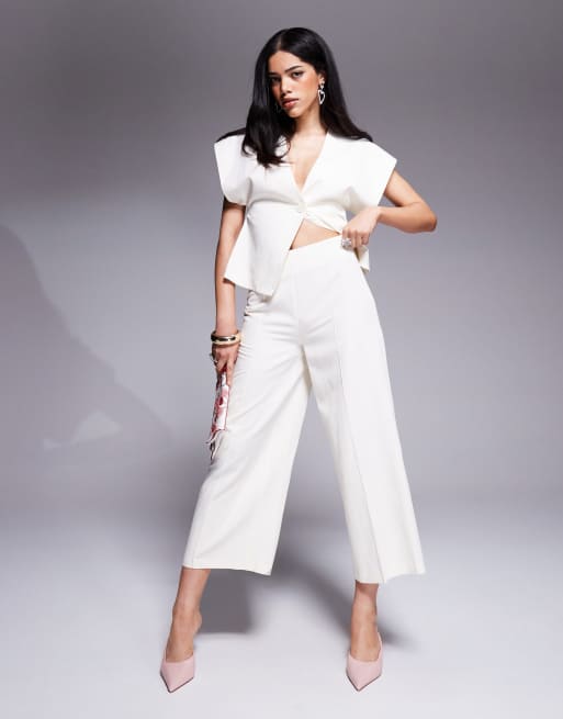 ASOS DESIGN - Jupe-culotte d'ensemble ajustée en lin - Ivoire