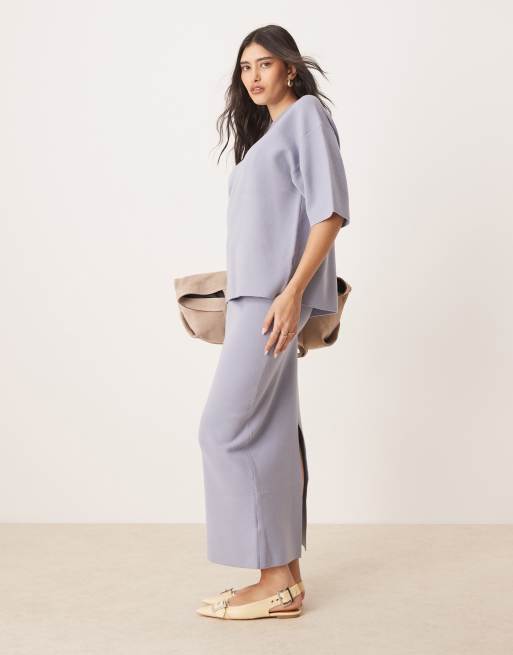 ASOS DESIGN - Jupe d'ensemble en maille structurée longueur mollet - Bleu pâle