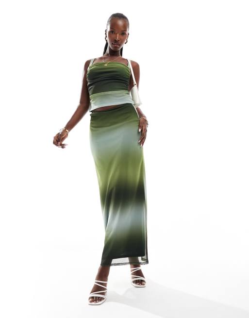 ASOS DESIGN - Jupe d'ensemble longue en tulle effet dégradé - Vert
