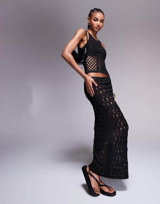 ASOS DESIGN - Jupe d'ensemble mi-longue en maille ajourée - Noir
