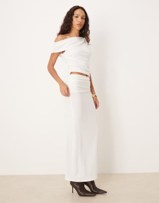 ASOS DESIGN - Jupe droite longue d'ensemble en maille côtelée texturée - Ivoire