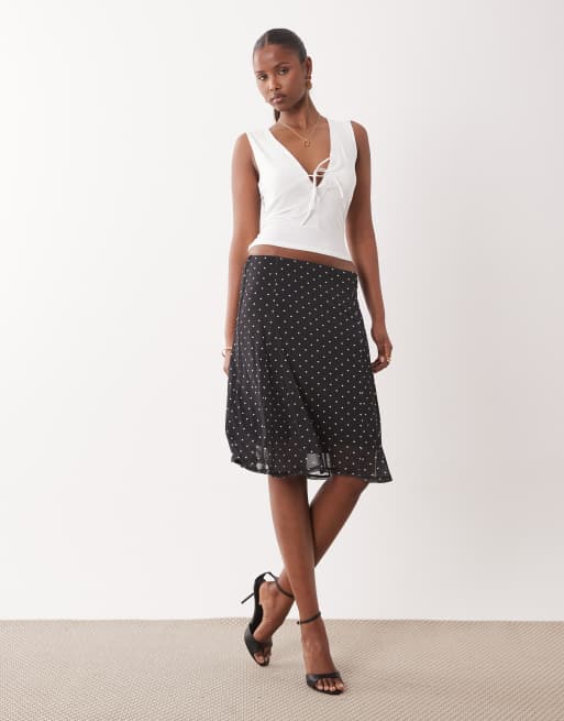 ASOS DESIGN - Jupe fourreau mi-longue d'ensemble en tulle à pois et taille basse avec godets - Noir et blanc