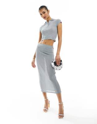 ASOS DESIGN - Jupe fourreau mi-longue d'ensemble - Gris bleu