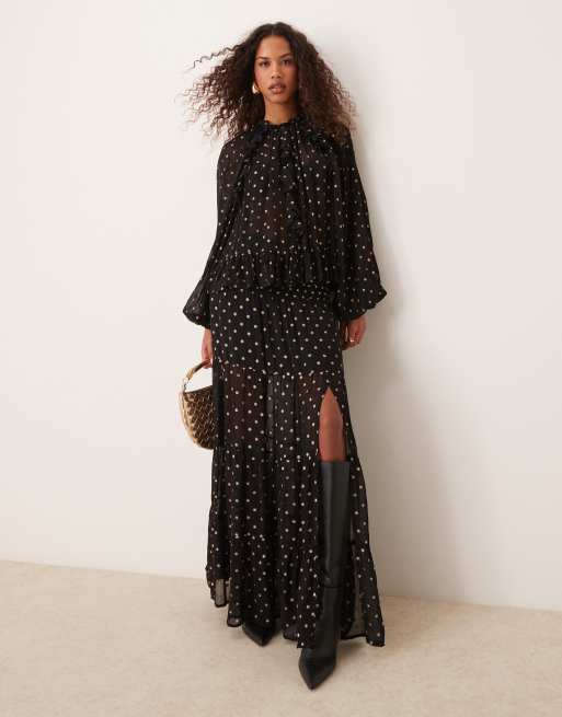 ASOS DESIGN - Jupe longue à pois métallisés - Noir et doré