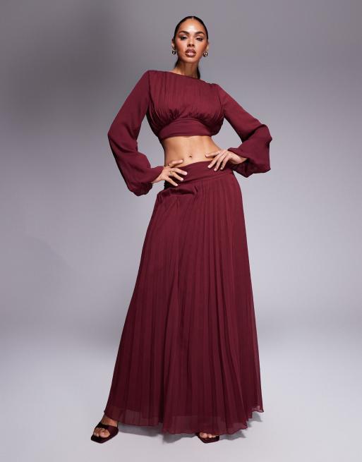 ASOS DESIGN - Jupe longue d'ensemble plissée à taille basse - Cerise foncé
