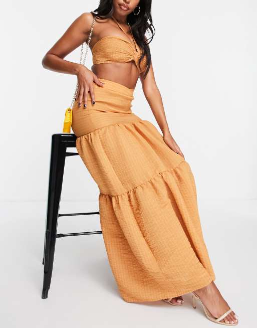 ASOS DESIGN - Jupe longue d'ensemble texturée à volants - Orange brûlé