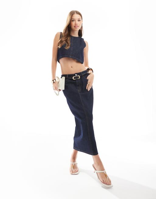 ASOS DESIGN - Jupe longue en jean coupe slim - Indigo