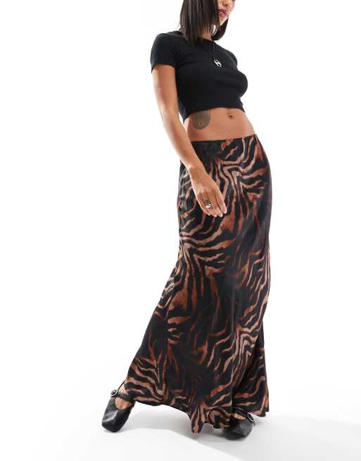ASOS DESIGN - Jupe longue en satin coupée en biais à zébrures