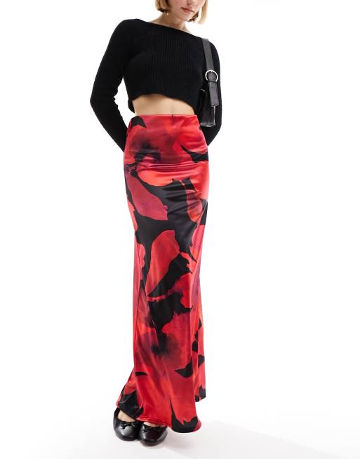 ASOS DESIGN - Jupe longue en satin de sergé avec imprimé fleuri