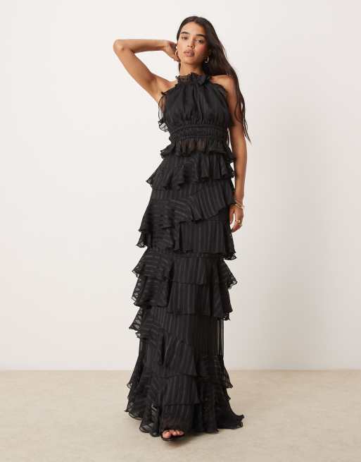 ASOS DESIGN - Jupe longue habillée d'ensemble à volants - Noir