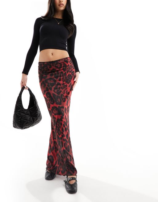 ASOS DESIGN - Jupe longue - Imprimé léopard rouge