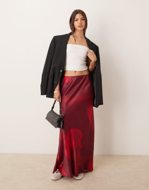 ASOS DESIGN - Jupe longue satinée avec imprimé fleurs oversize