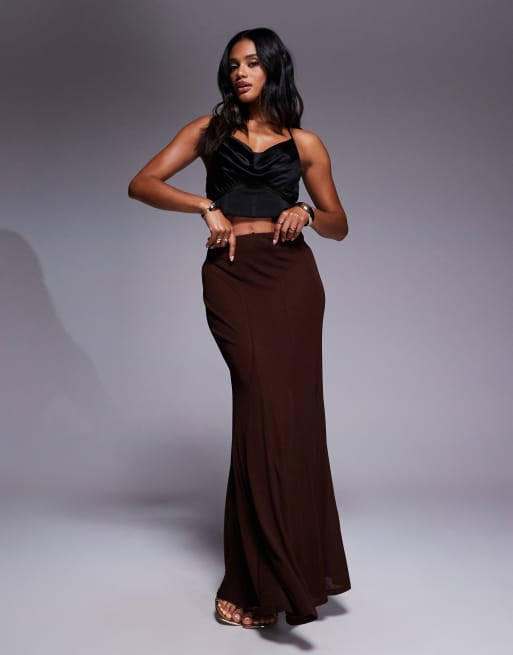 ASOS DESIGN - Jupe longue semi-transparente à godets - Marron