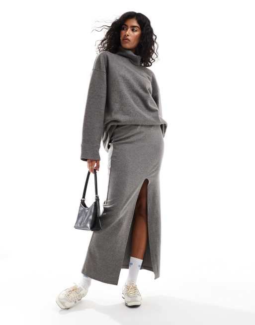 ASOS DESIGN - Jupe longue ultra douce fendue devant - Anthracite chiné