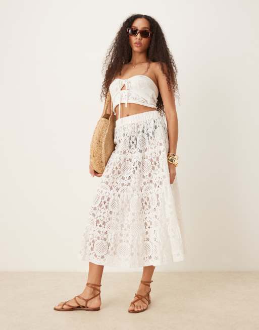 ASOS DESIGN - Jupe longueur mollet à volants en broderie anglaise transparente - Blanc