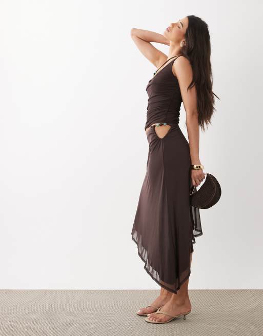 ASOS DESIGN - Jupe mi-longue asymétrique d'ensemble en tulle avec perles - Marron