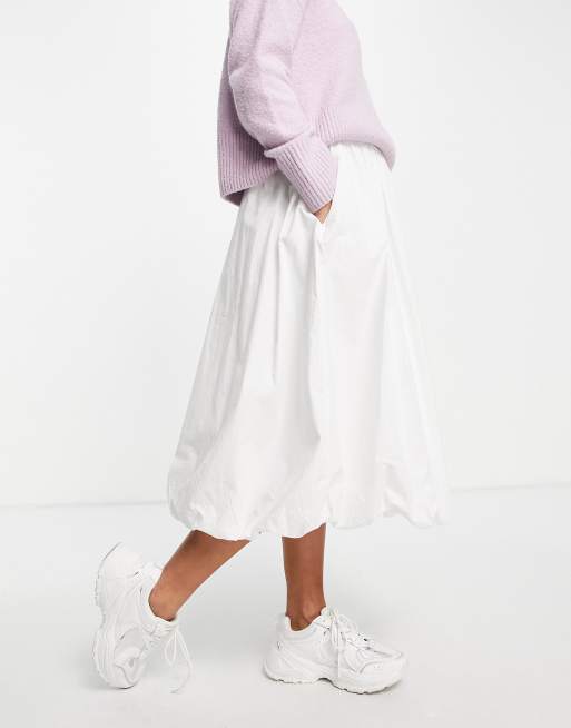ASOS DESIGN - Jupe mi-longue bouffante en coton - Blanc