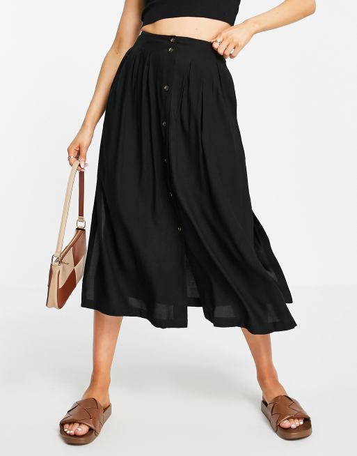 ASOS DESIGN - Jupe mi-longue boutonnée à poche profonde - Noir