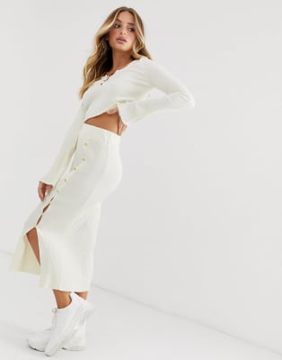 ASOS DESIGN - Jupe mi-longue en maille côtelée et pull court à encolure dégagée (ensemble)
