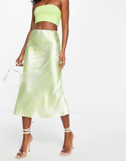 ASOS DESIGN - Jupe mi-longue en satin coupée en biais - Imprimé léopard jaune