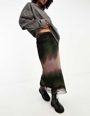 ASOS DESIGN - Jupe mi-longue en tulle à imprimé flou