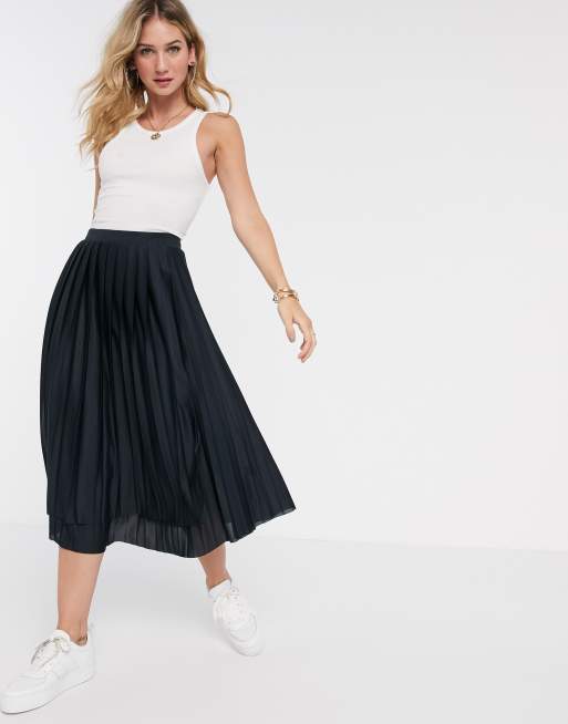 ASOS DESIGN - Jupe mi-longue plissée à ourlet asymétrique - Bleu marine
