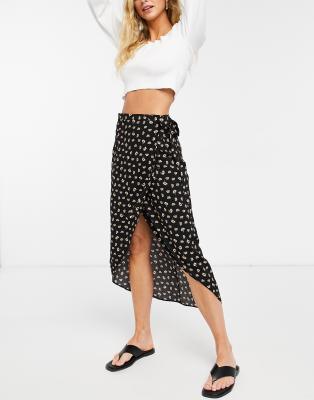 ASOS DESIGN - Jupe mi-longue portefeuille à imprimé floral