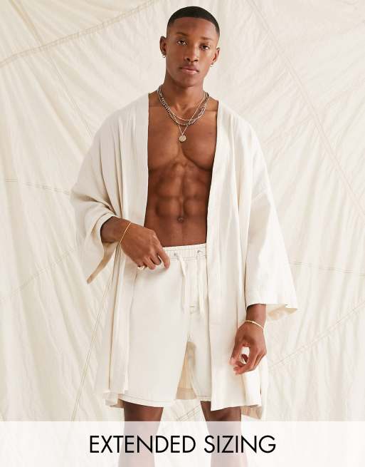 ASOS DESIGN - Kimono décontracté à rayures texturées - Naturel