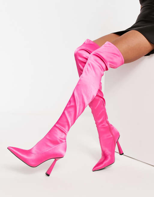 ASOS DESIGN - Krista - Bottes souples à talon en satin - Rose