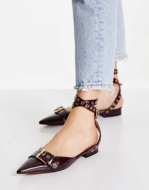 ASOS DESIGN - Lance - Ballerines plates avec boucle et œillets - Bordeaux